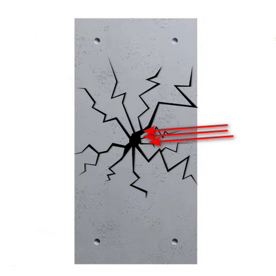 Bij andere materialen zoals steen ontstaat er een gat bij de plaats van impact. Ook zullen er ‘barsten’ ontstaan.