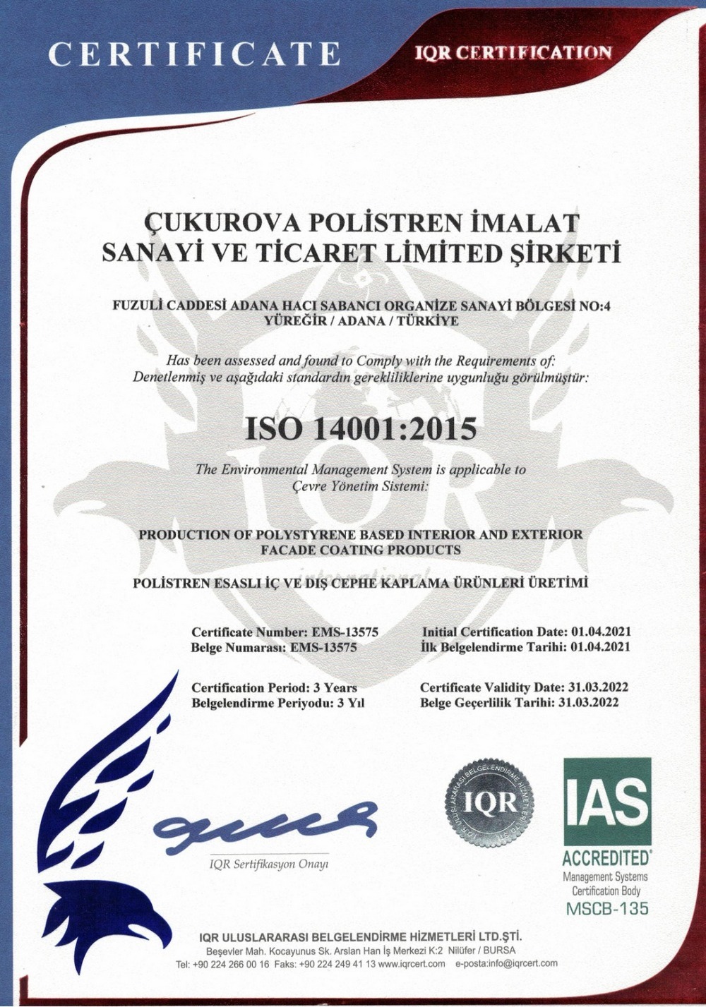 In Adana (Turkije) hebben we een grote zeer moderne fabriek. We hebben ons alleen gericht op de Aziatische markt. Sinds kort zijn we ook op de Europese markt actief.